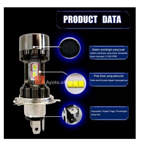 1 Pcs Lampu Utama Headlamp Headlight LED MOTOR MOBIL AYOTO A2-H4 45 Watt Angel Eyes