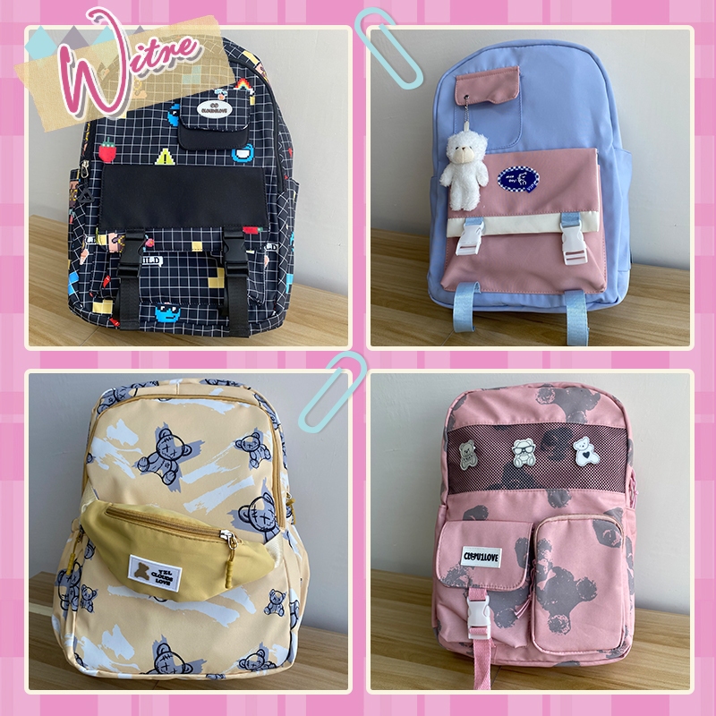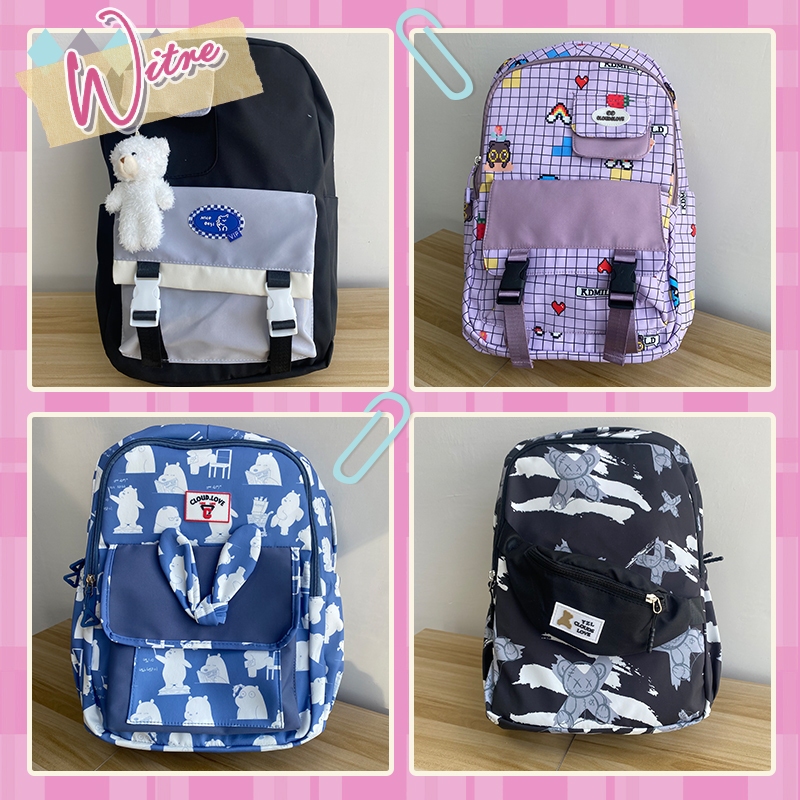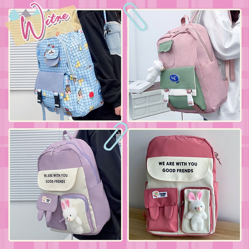 Tas ransel fashion korea tas sekolah ransel wanita Lencana + Liontin Gratis