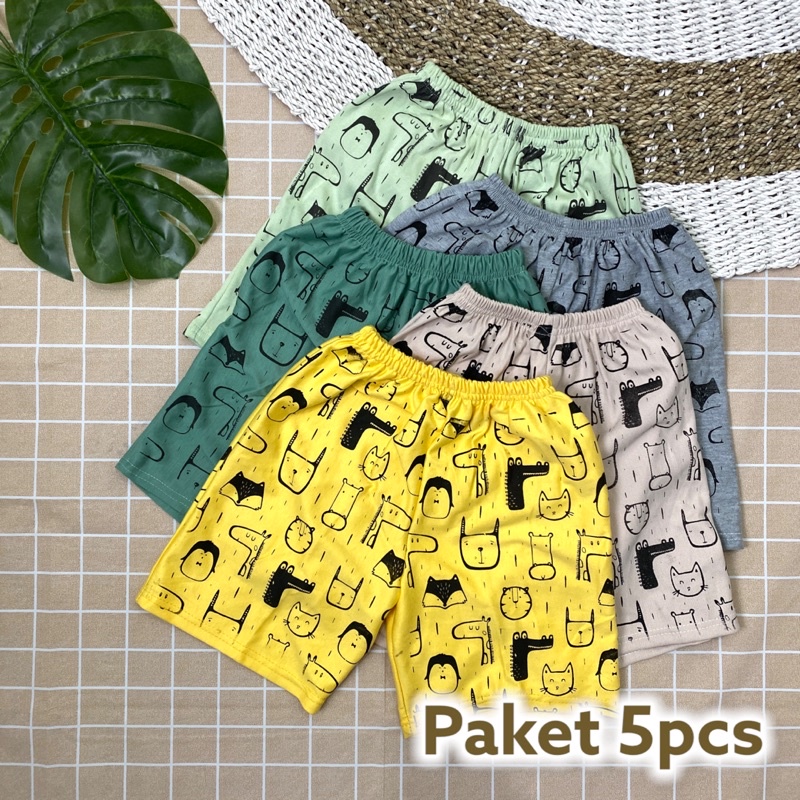 Bundling 5pcs Celana Pendek Anak Laki-laki Bahan Katun Kolor Santai Harian
