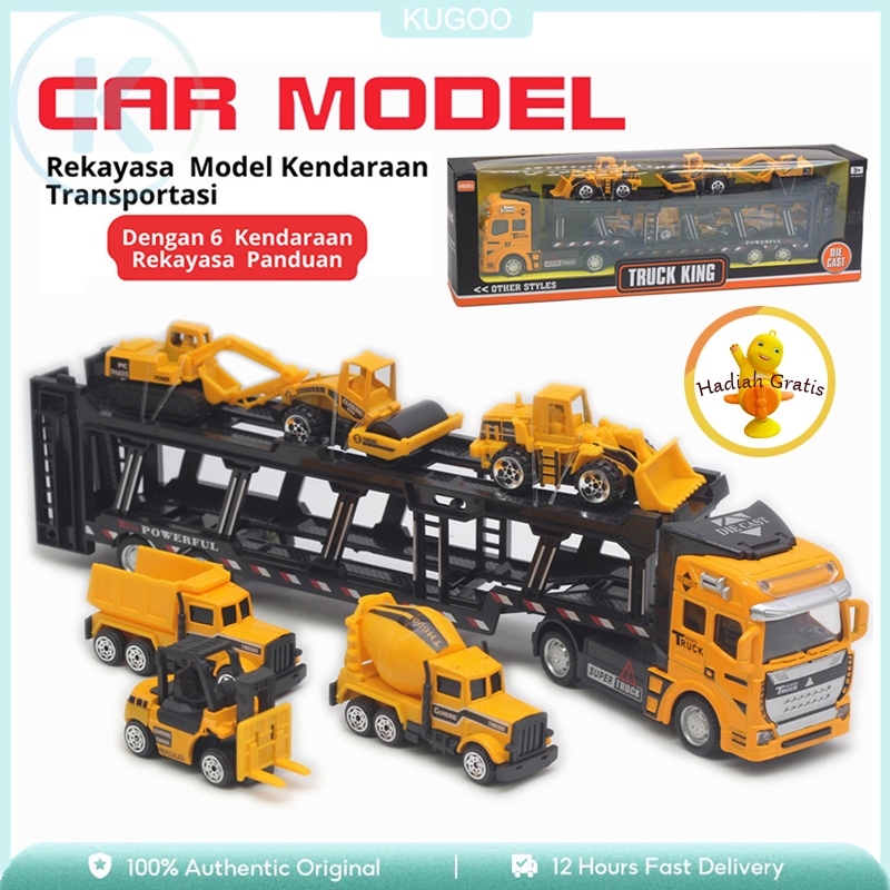 Mainan Mobil-mobilan Truk Container Pengangkut Diecast Metal Car Trucks Mobil Mainan Mobilan Bulldozer Excavator