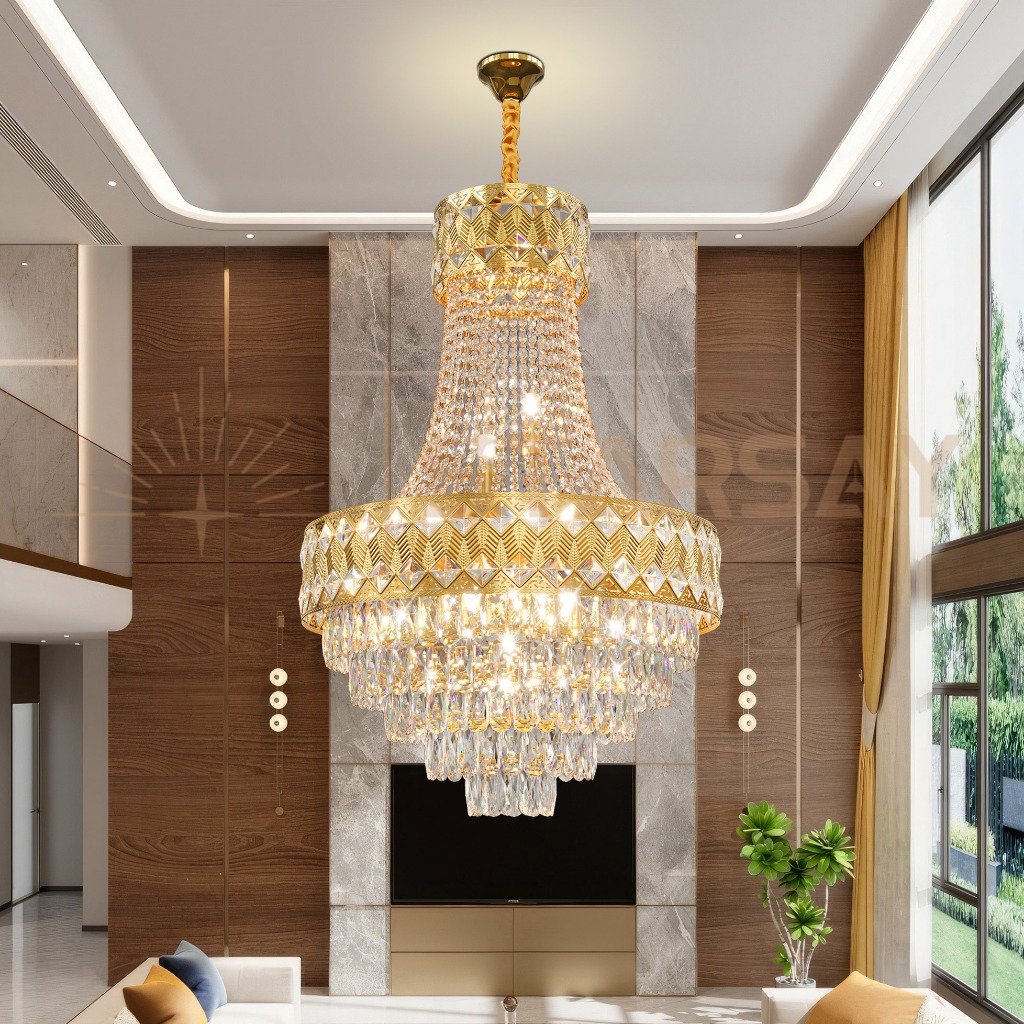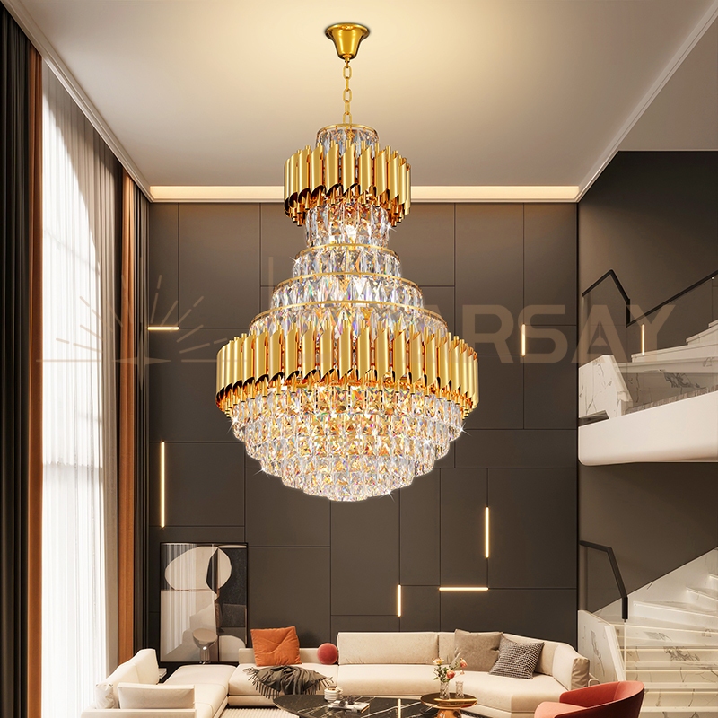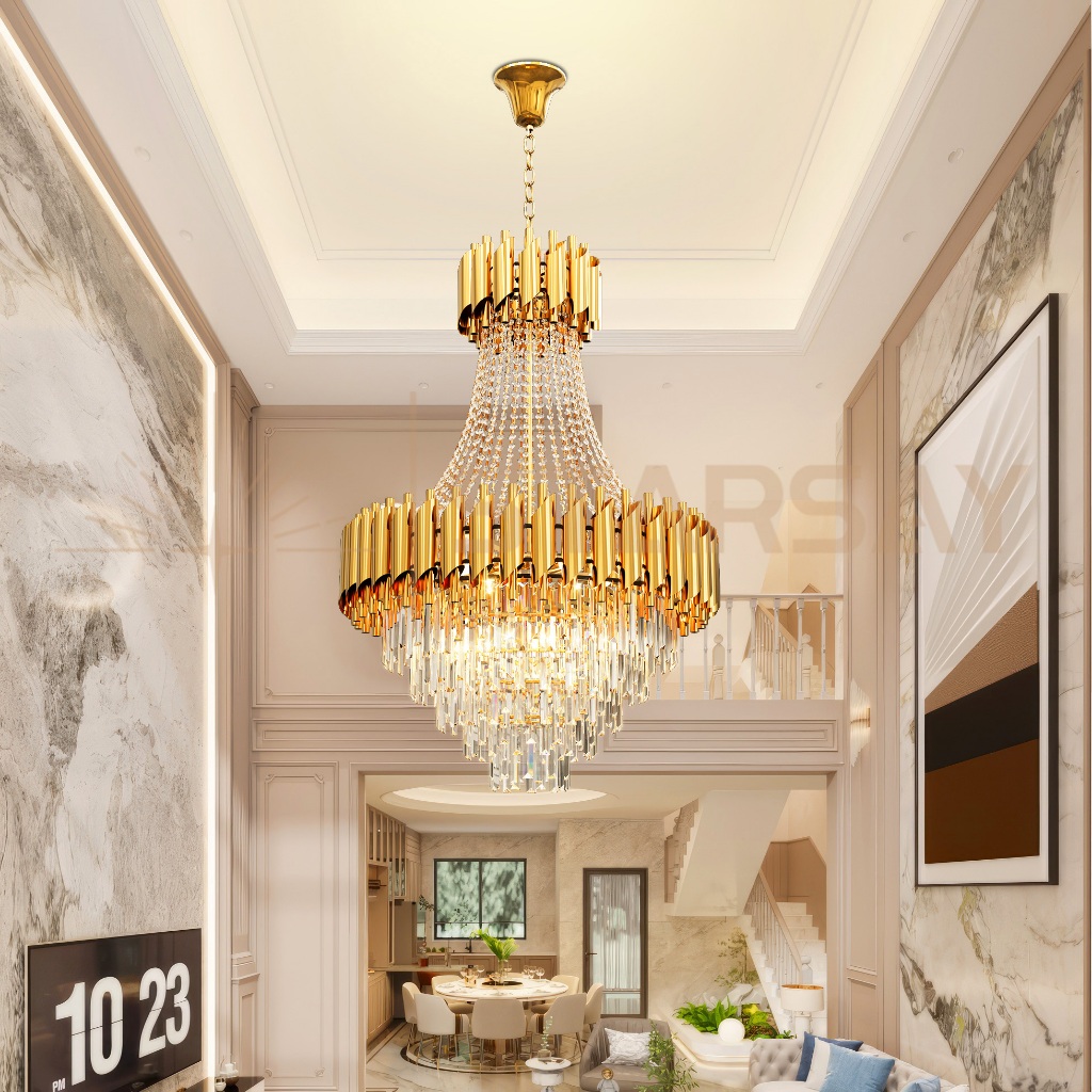 Lampu Gantung Kristal 40/50/60/80cm Double -Layer Chandelier Bullet Model Ruang Tamu Ruang Makan Hotel Vila Pernikahan