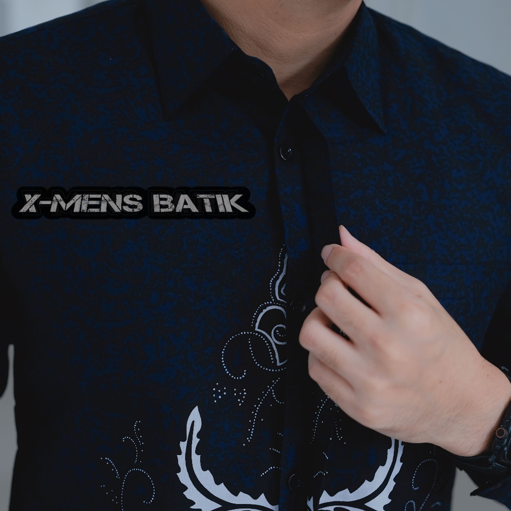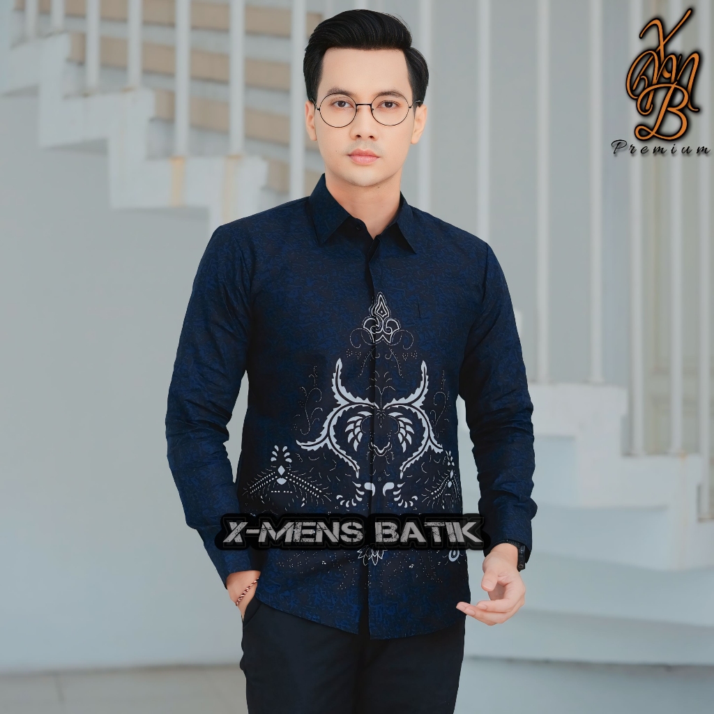kemeja batik pria lengan panjang Kemeja batik slimfit pria katun premium lapis puring ERRO motif Mahatirta Navy paduan H
