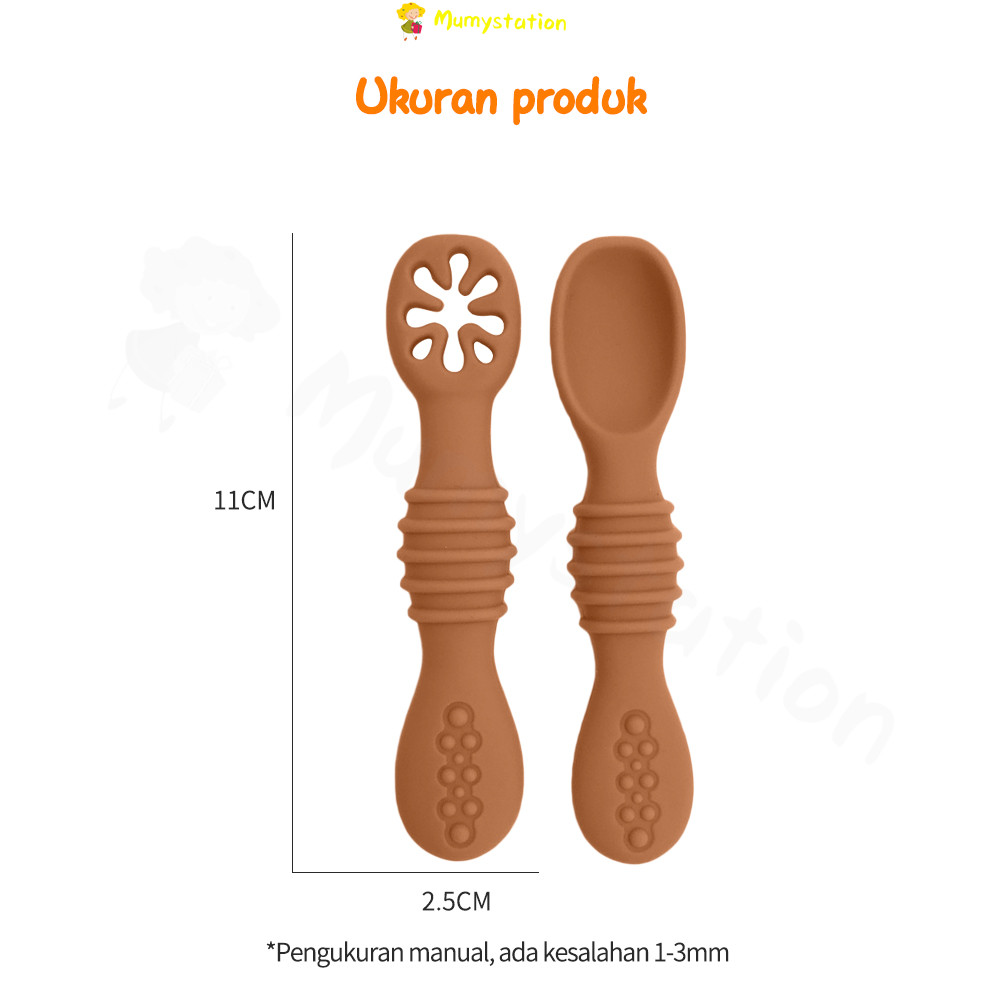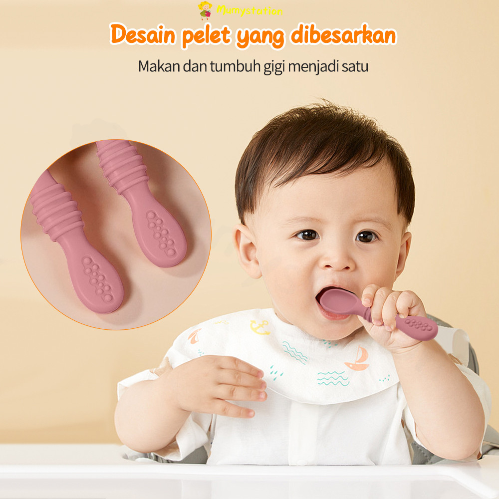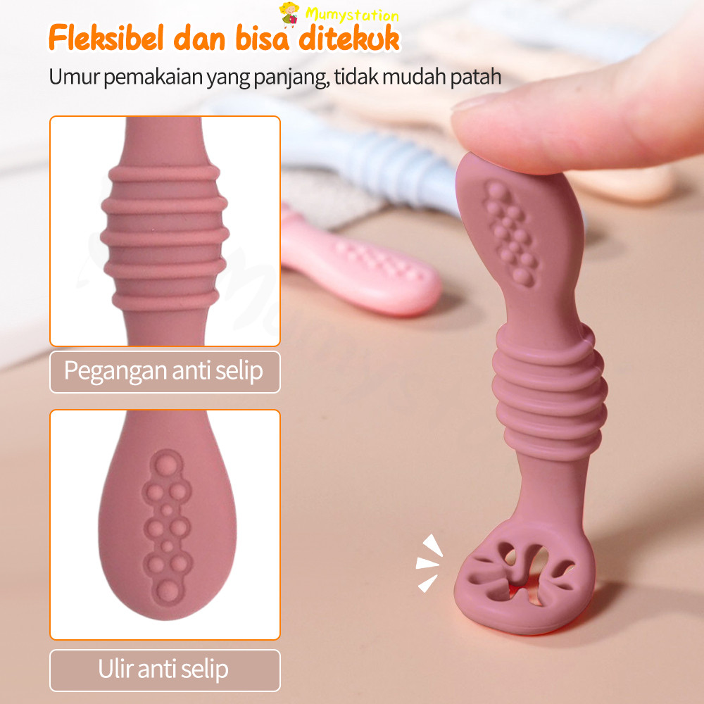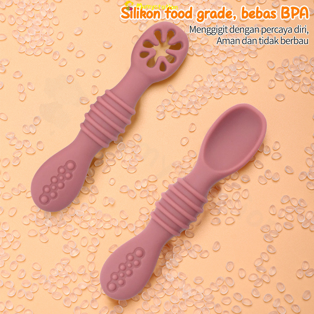 Mumystation 2pcs Sendok Mpasi Silikon Baby Training Spoon Teether Bayi