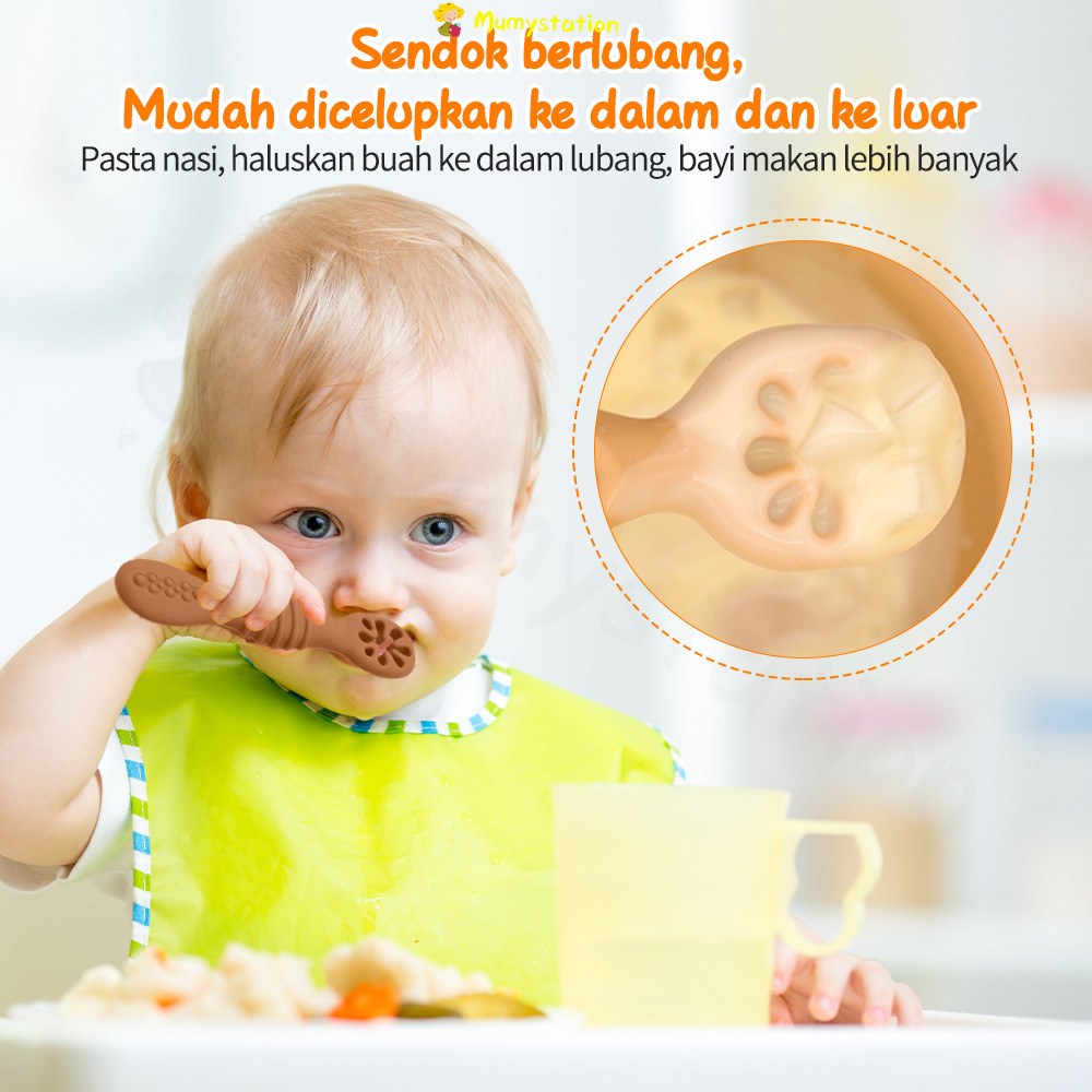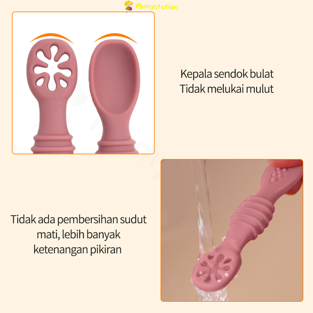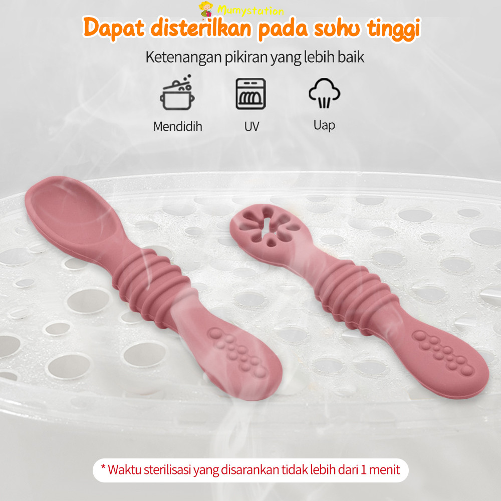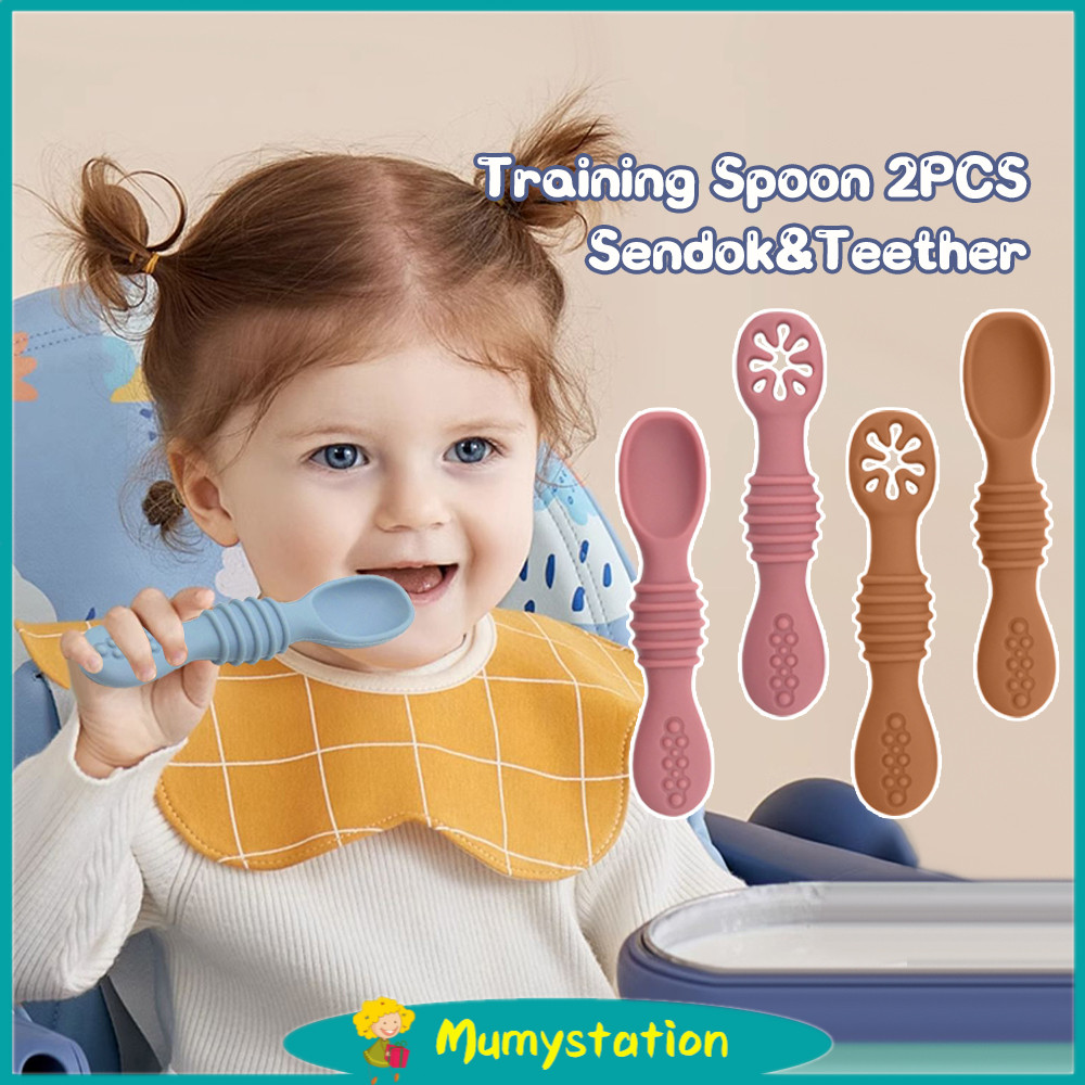 Mumystation 2pcs Sendok Mpasi Silikon Baby Training Spoon Teether Bayi