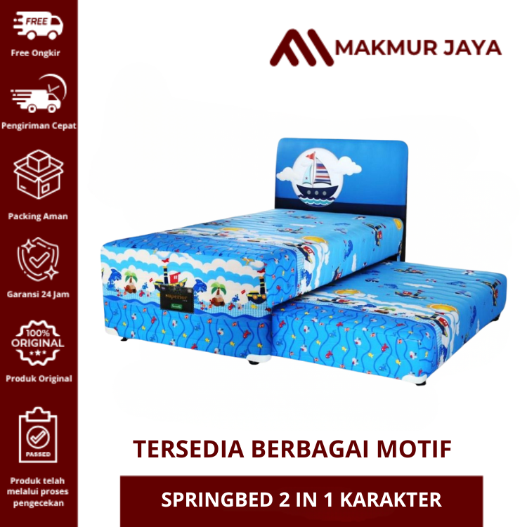 SPRINGBED SORONG 2 IN 1 KARAKTER KASUR SPRING BED ANAK KARTUN MERK PRIMA 100X200 MURAH BERKUALITAS TANPA DP PROMO