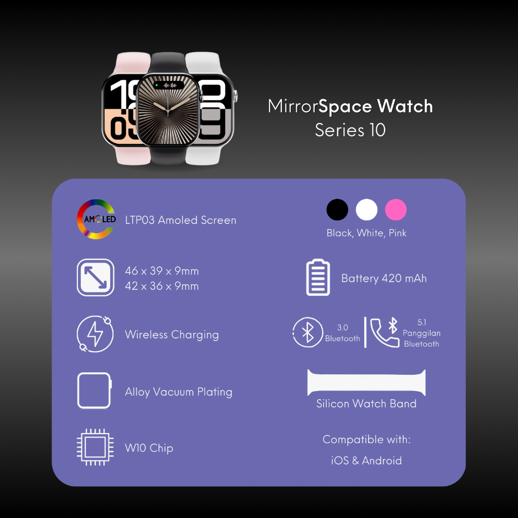 jam tangan smart Watch 10 Dynamic Island, LTPO3-AMOLED, AI Assistant