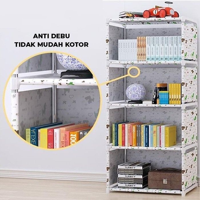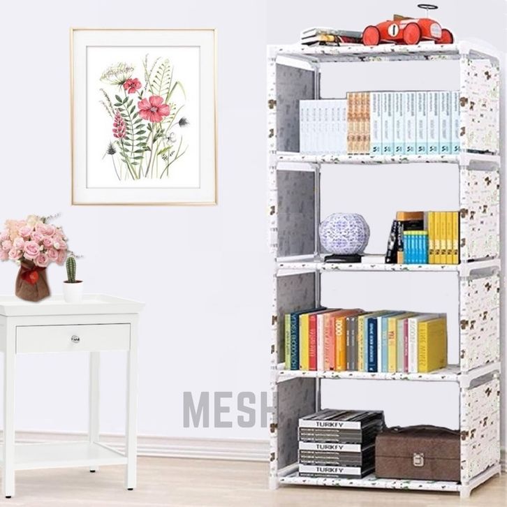 Rak Susun Serbaguna Rak Portable Serbaguna 5 Susun 4 Ruang Rak Buku Multifungsi Warna White BEAR