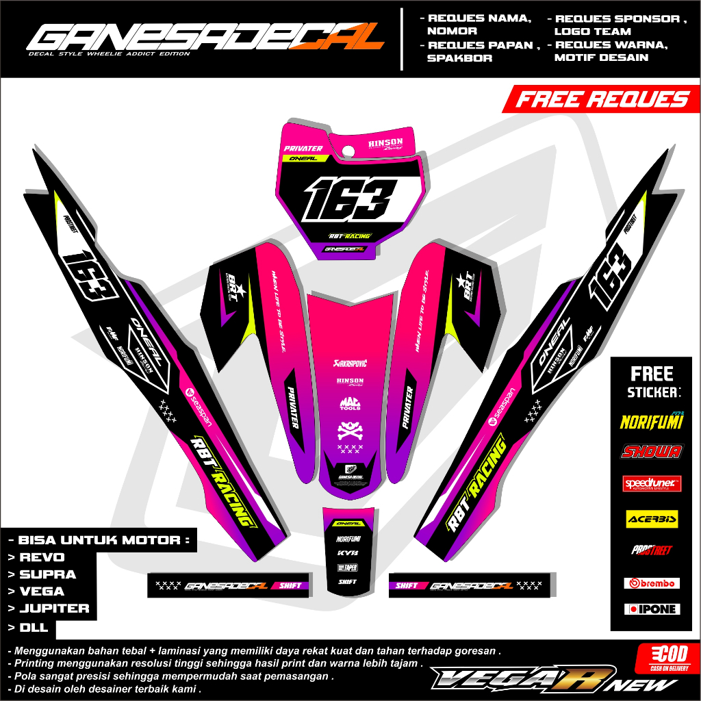 Sticker RBT GTX VEGA R NEW Stiker Striping Motor RBT Bebek Modif Terbaru SUPERMOTO YZ CRF KLX KX KTM RBT GTX new t