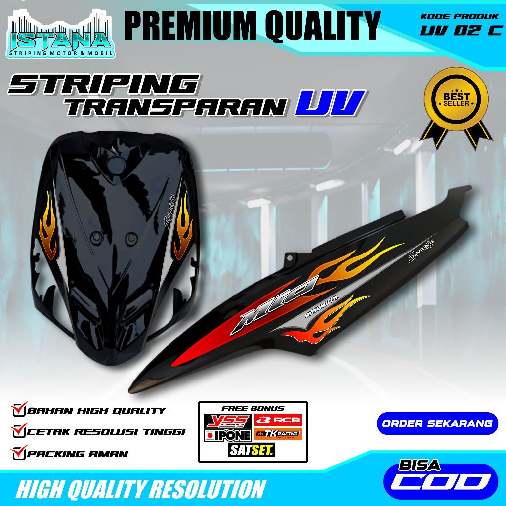 STRIPING STICKER MOTOR YAMAHA MIO LAWAS API-STICKER MOTR MIO TERBARU UV TRANSPARAN HOLO VINYL-UV 02