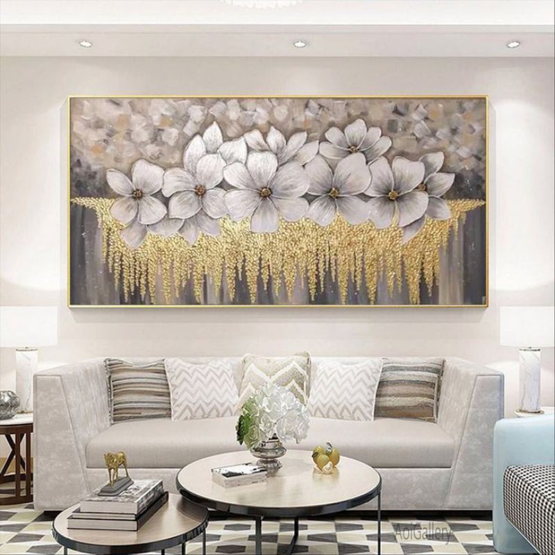 hiasan dinding ruang tamu abstrak modern bunga teksture