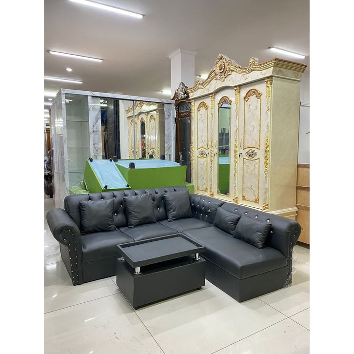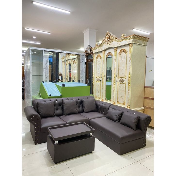 sofa ruang tamu Sofa L minimalis / sofa L kancing Best Seller dan Terlaris
