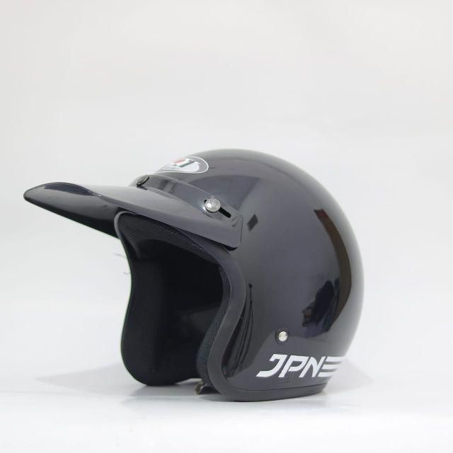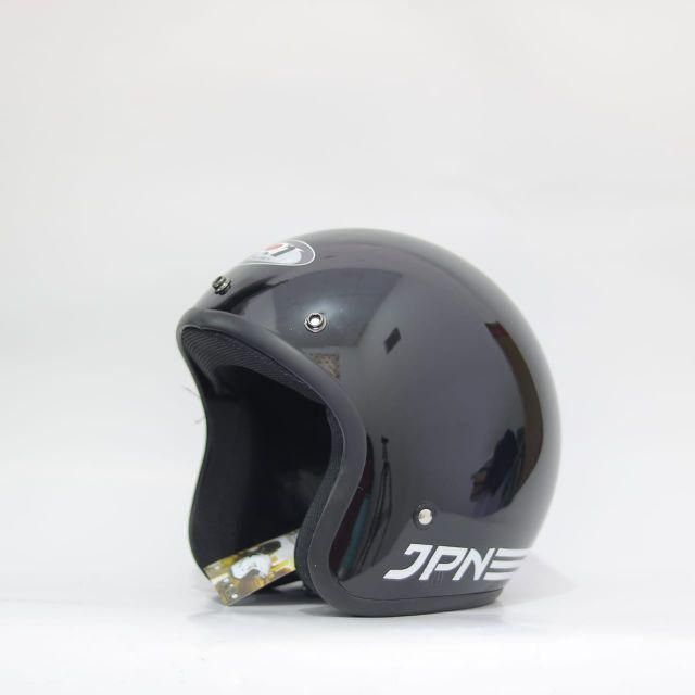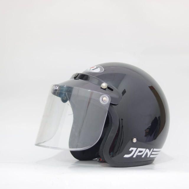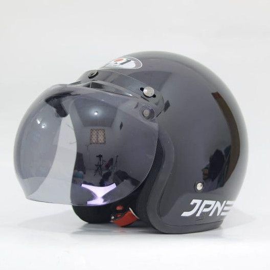 Helm Jpn Black Glossy Helmet Motor Bogo Retro Polos Pria Wanita Paket Kaca Datar Flat Visor Terlaris