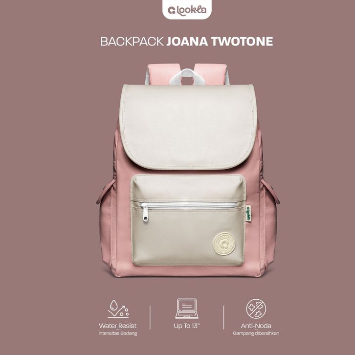 Lookla I Joana Twotone Backpack Leather Backpack Ransel Wanita Waterproof Tas Kuliah Sekolah Tas Ransel Tas Gendong Tas