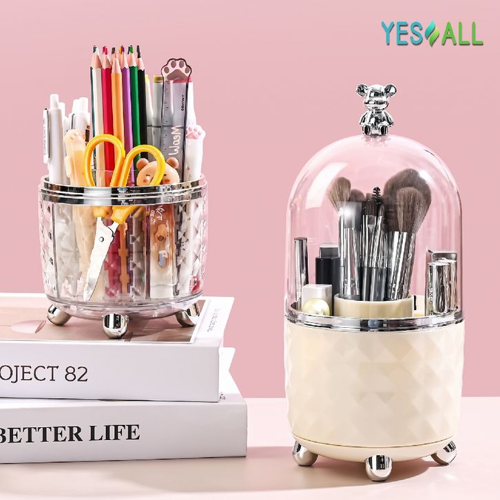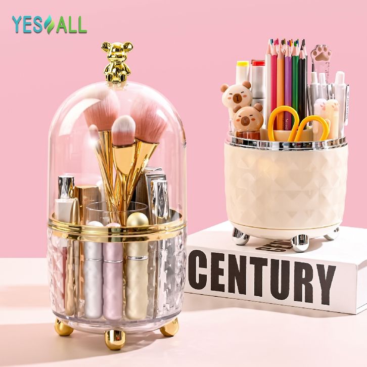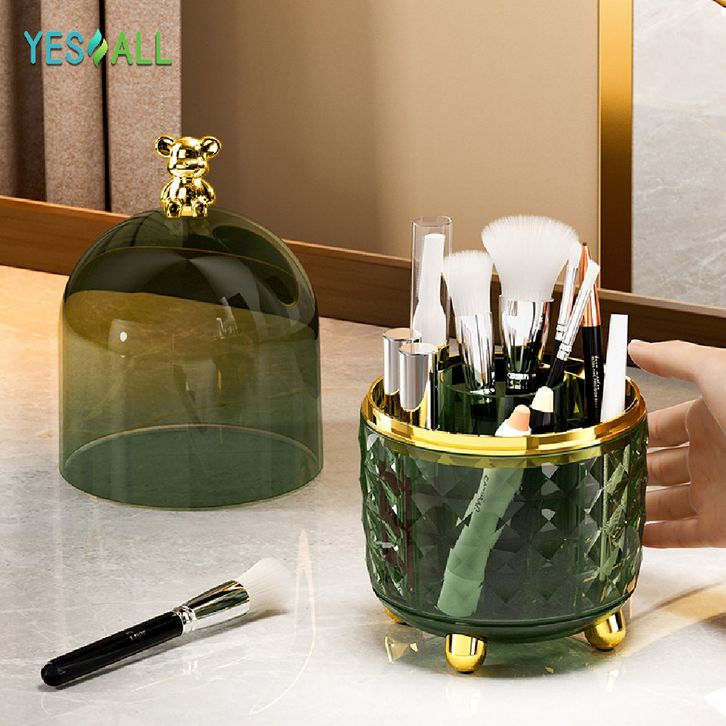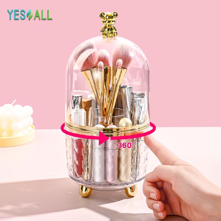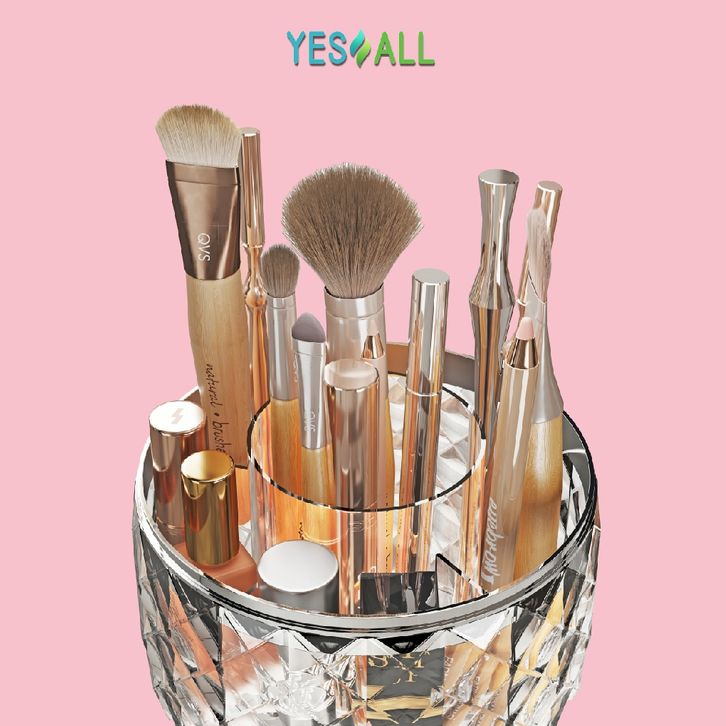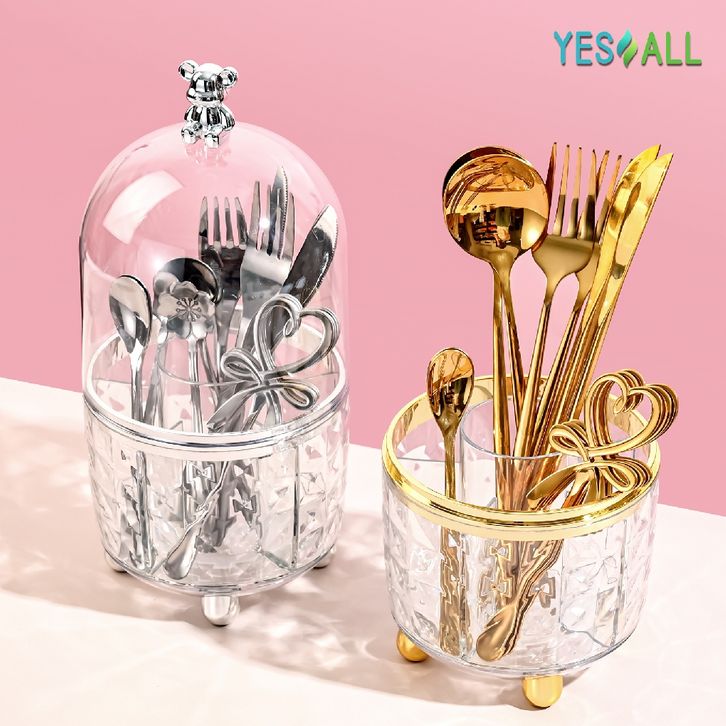 Rak Kosmetik Makeup Crystal Transparan Aesthetic Rak Kosmetik Putar 360 Derajat Aesthetic Tempat Sendok Garpu Tertutup