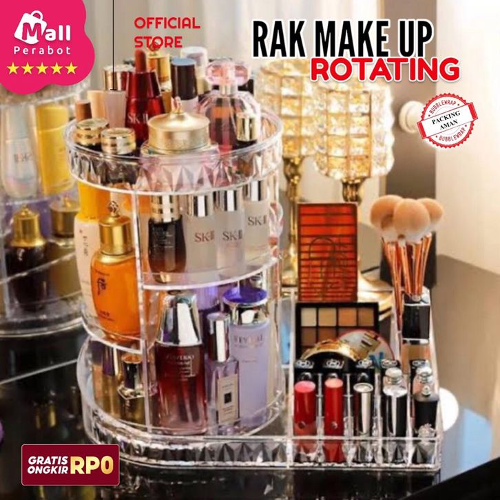 Rak Kosmetik Aesthetic Rak Kosmetik Acrylic Putar 360 Derajat Diamond