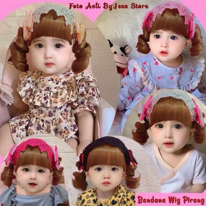 [ Curly Pirang ] Ban- Anak Wig Poni Curly Pirang / Ban- rambut Anak Warna Pirang 06-4Th - Hitam
