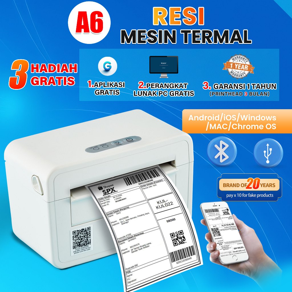 [Mall] PRINTER THERMAL CETAK RESI LABEL CEPAT JELAS USB+BLUTOOTH MUDAH DIGUNAKAN
