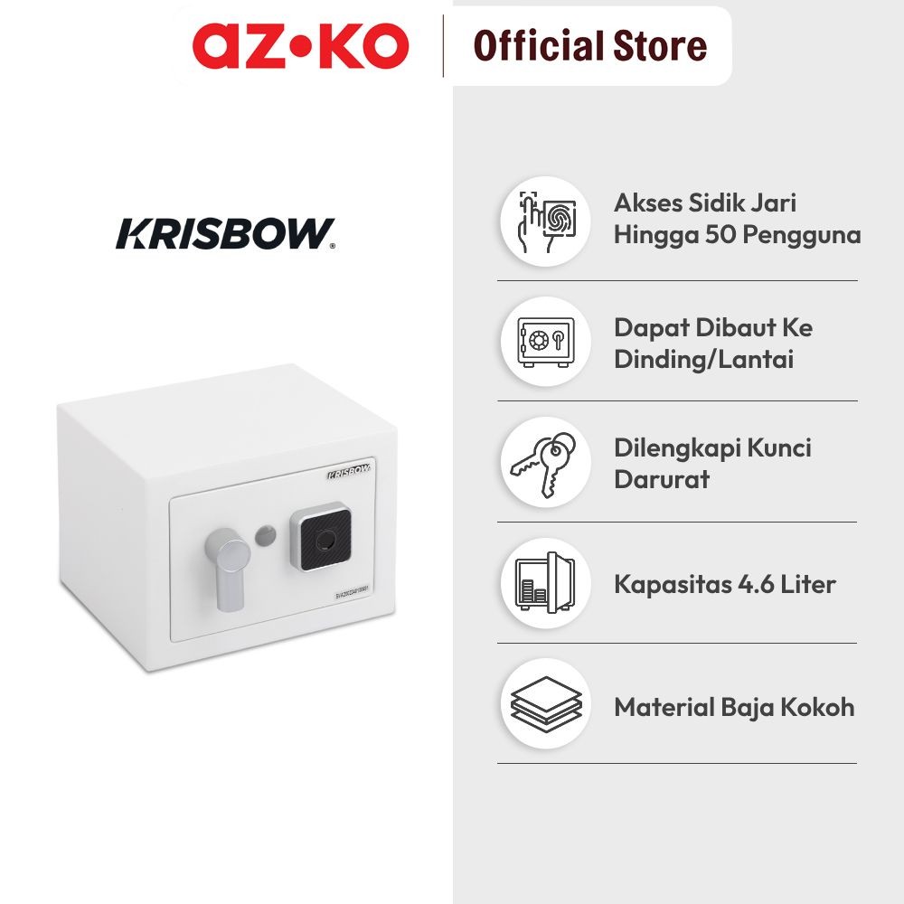 AZKO Krisbow Brankas Besi 17fp 1/3 Mm - Putih Steel Safe Fingerprint Lemari Brangkas Besi Safety Box Tempat Simpan Baran