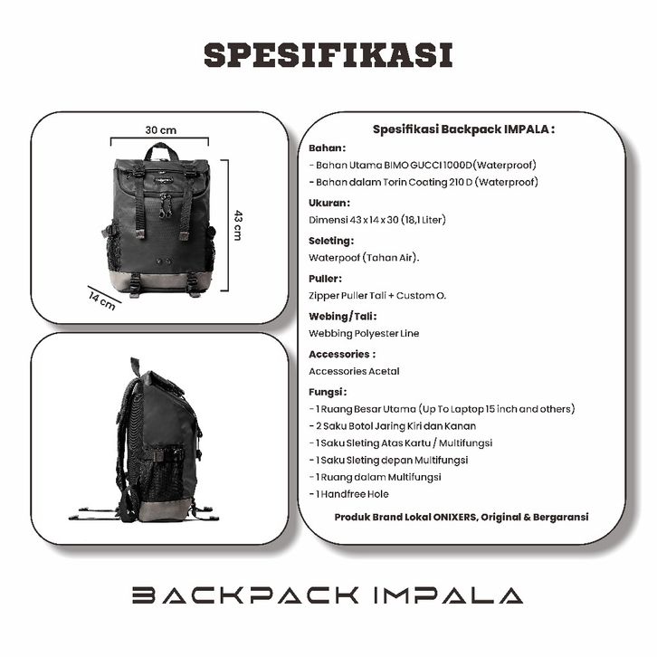 Tas Ransel Pria Onixers Impala Tas Backpack Pria Waterproof Tas Gendong Pria