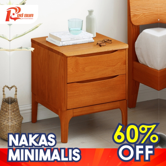 Meja Nakas Samping Tempat Tidur Rak Penyimpanan Laci Kayu Mahoni Asli Jepara- Redsun