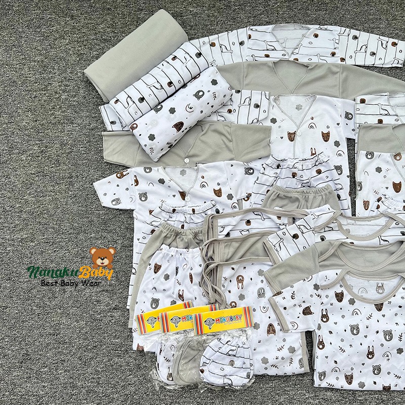 Nanaku Baby - Isi 47 PCS Paket Lahiran Lengkap Set Kado Series Abu Setelan Baju Celana Bayi Baru Lahir