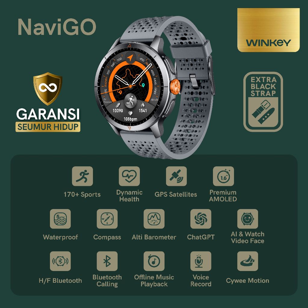 [Mall] Smartwatch WINKEY NaviGO GPS AMOLED Screen BT Call 5ATM Waterproof Original