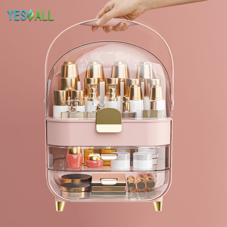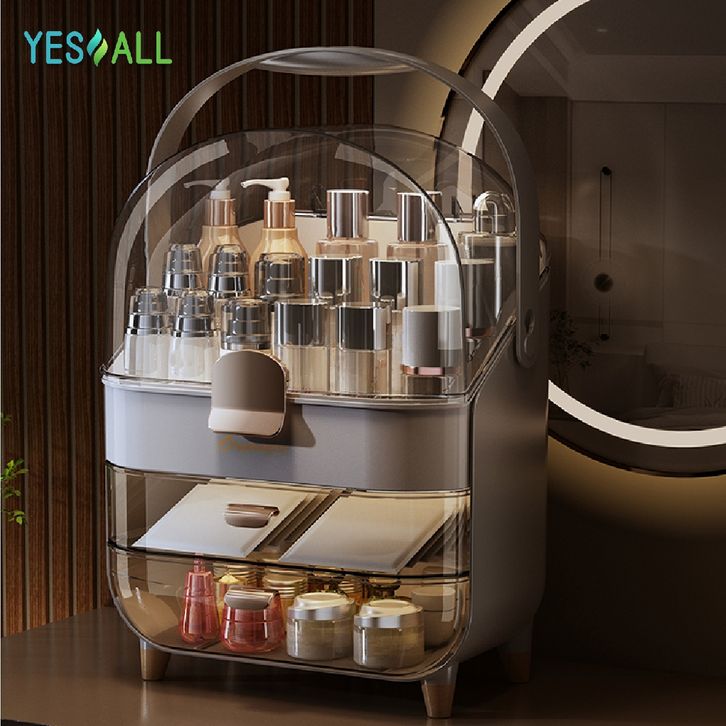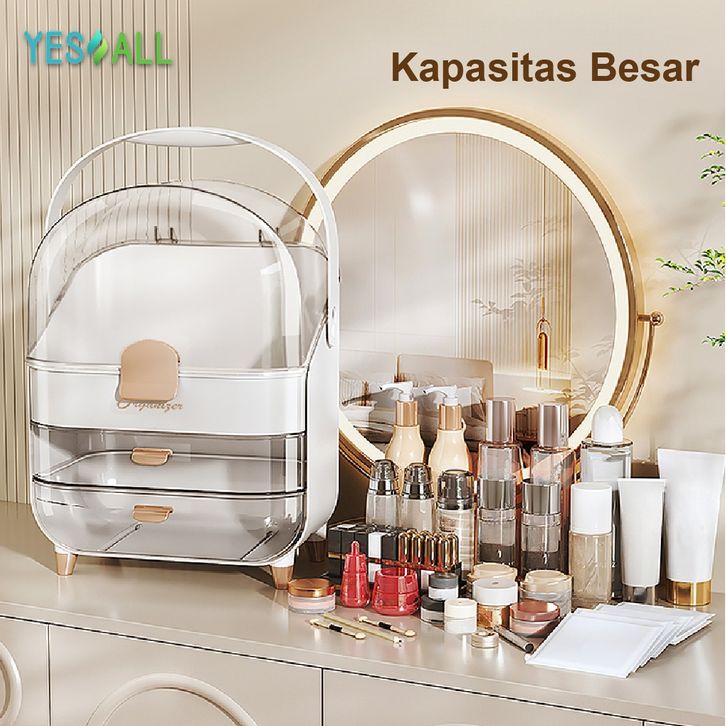 Rak Skincare Portable Aesthetic Anti Debu Serbaguna Rak Makeup Kosmetik Estetik Transparan Tempat Penyimpanan Organizer
