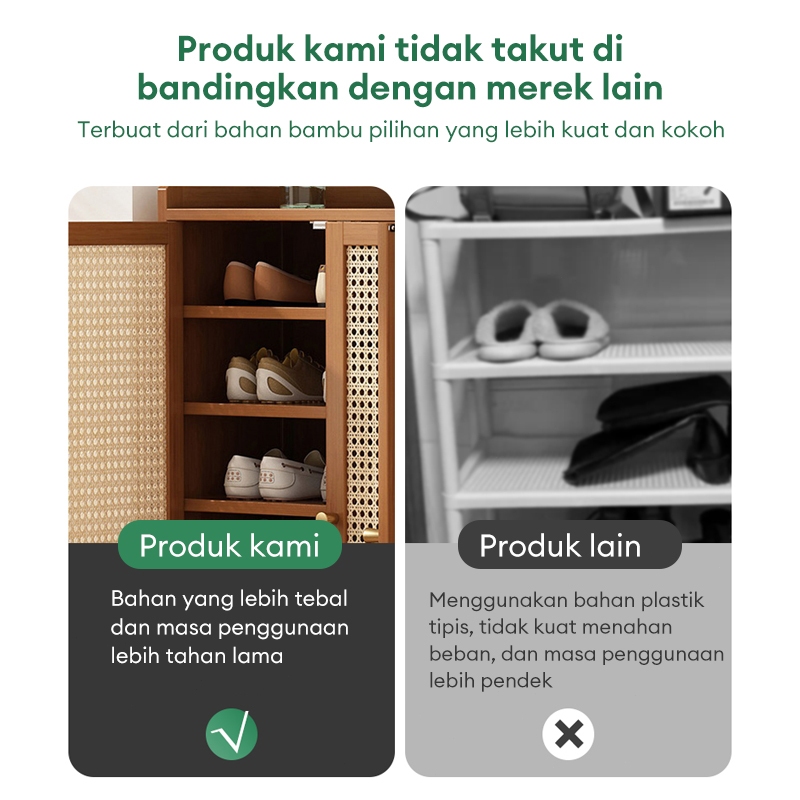 Rak Sepatu Susun Kayu Lemari Sepatu Tertutup Rak Sepatu Rotan Tertutup Estetik TerasGaransi 5 tahun 4.6 171 penilaian