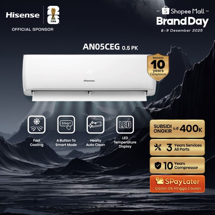 Hisense AC Air Conditioner Standard 0.5PK/1/2PK - AN05CEG (Indoor+Outdoor Unit Only)