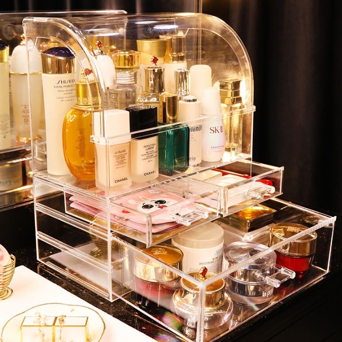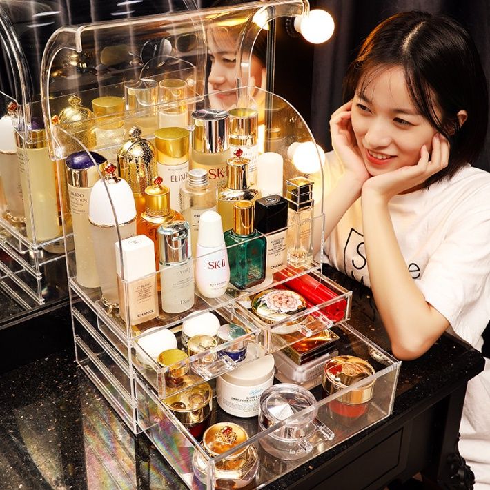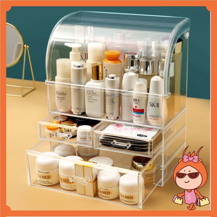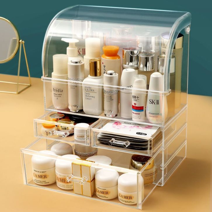 Rak Makeup Aesthetic Storage Tray dengan Penutup Kotak Penyimpanan Multifungsi Rak Kosmetik Terorganisir R6024