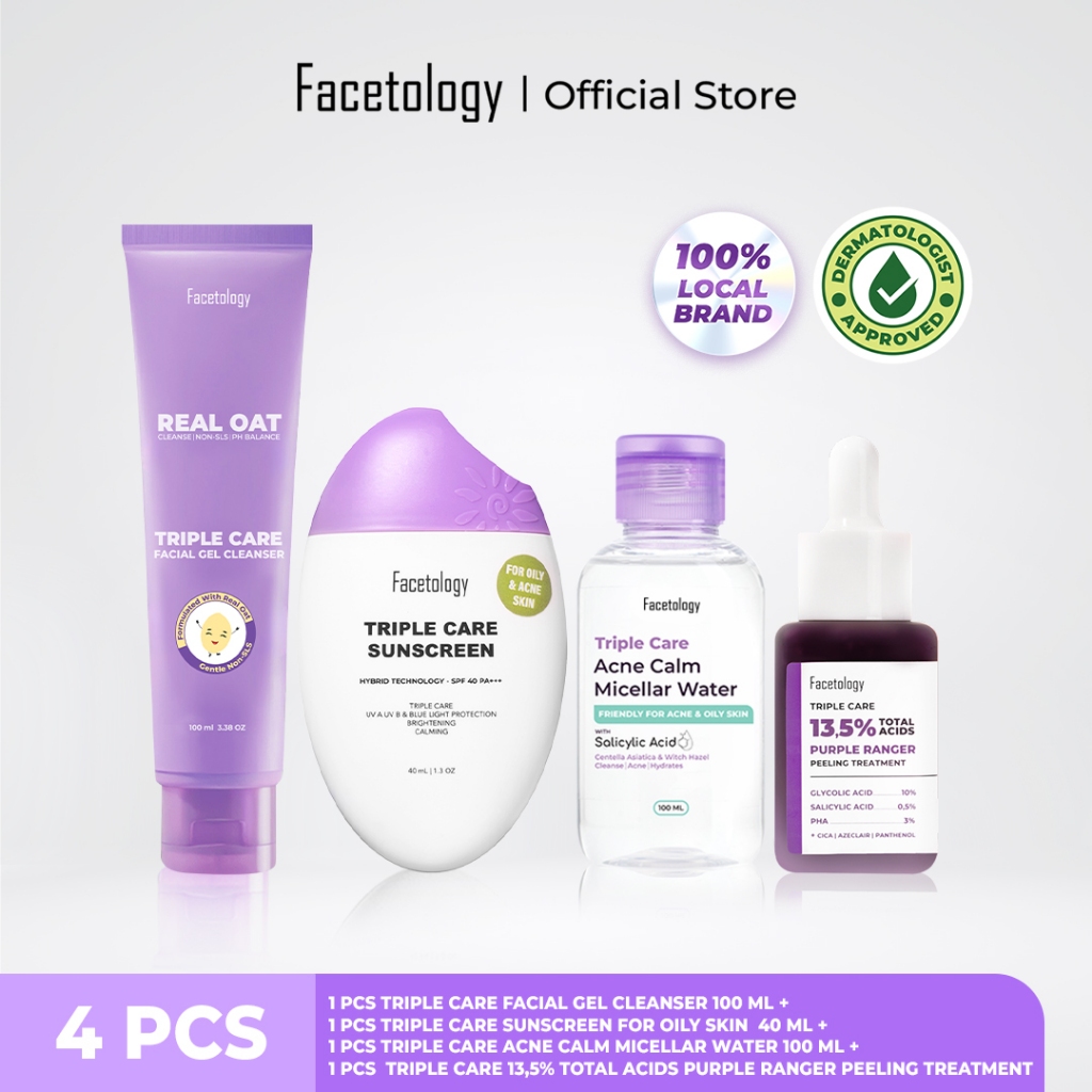 Triple Care Purple Ranger Peeling Treatment Serum, Triple Care Sunscreen For Normal SPF 40 PA++ 40ml, Triple Care Sunscreen For Oily SPF 40 PA++ 40ml, Triple Care Sunscreen Tinted SPF 50 PA++++ 40ml, Triple Care Sunscreen For Oily SPF 40 PA++ 100ml, Triple Care Sunscreen For Normal SPF 40 PA++ 100ml, Triple Care Hydra Cleanse Micellar Water 300ml, Triple Care Acne Calm Micellar Water 300ml, Triple Care Facial Gel Gentle Cleanser 100ml, Triple Care Acne Calm Cleanser 100ml, Triple Care Hydra Cleanse Micellar Water 100ml, Triple Care Acne Calm Micellar Water 100ml, Triple Care Acne Calm Moisturizer 35gr, Bundling Sunscreen & Micellar Water For Acne 300ml, Bundling Sunscreen & Hydra Micellar Water 300ml, Bundling Sunscreen & Hydra Micellar Water 100ml, Bundling Sunscreen & Micellar Water For Acne 100ml, Bundling Sunscreen & Gel Cleanser For Normal, Bundling Sunscreen & Gel Cleanser For Oily Skin, Bundling Acne Calm Cleanser & Sunscreen For Oily, Bundling Acne Calm Cleanser & Sunscreen For Normal, Bundling Acne Calm Moist & Sunscreen For Oily 40ml, Bundling Acne Calm Moist & Acne Calm Cleanser, Bundling Acne Calm Moist & Sunscreen For Oily 100m, Bundling Acne Cleanser+Moist+Sunscreen , Bundling Cleanser+Moist+Sunscreen for Acne, Bundling Acne Micellar+Suncreen+Cleanser, Bundling Hydra Micellar+Suncreen+Cleanser