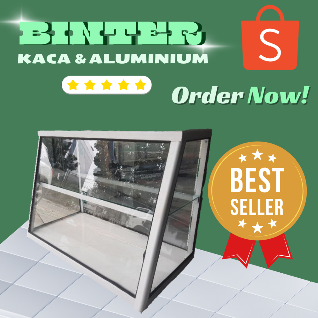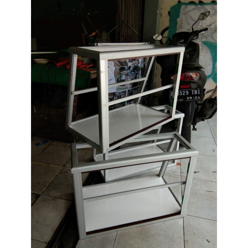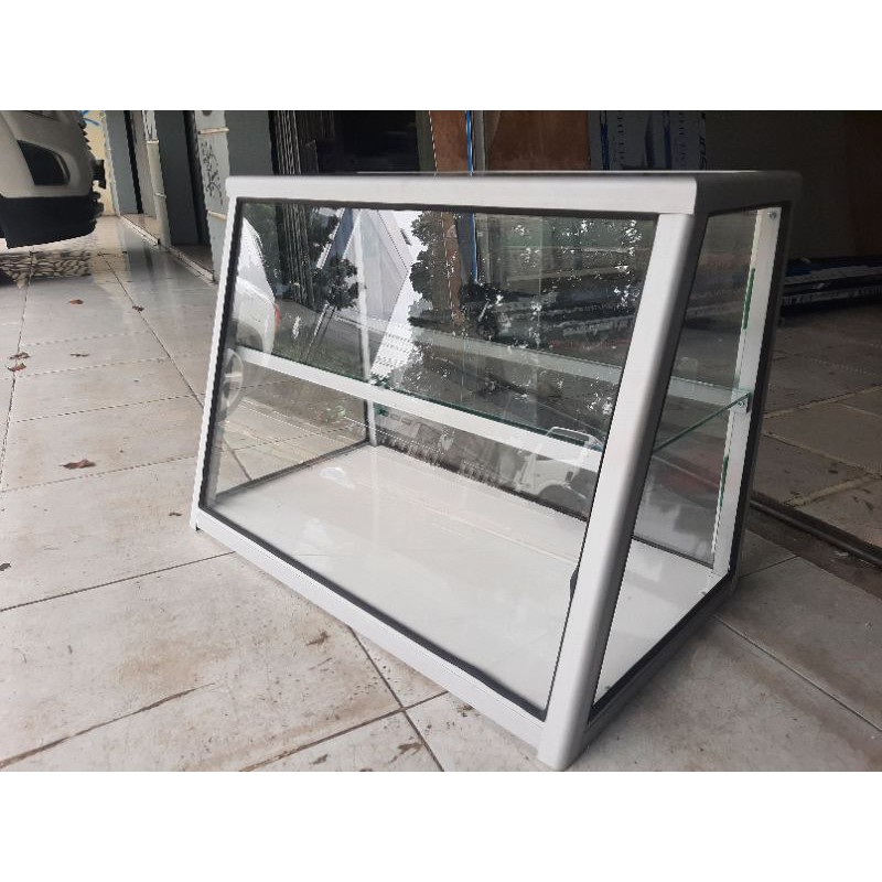 BISA CICIL etalase kaca miring ukuran P70 x L40 x T50