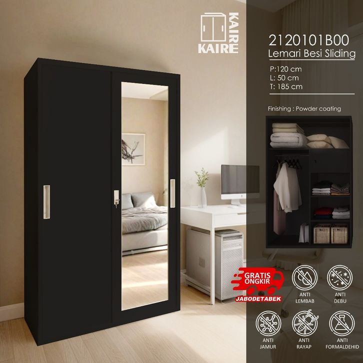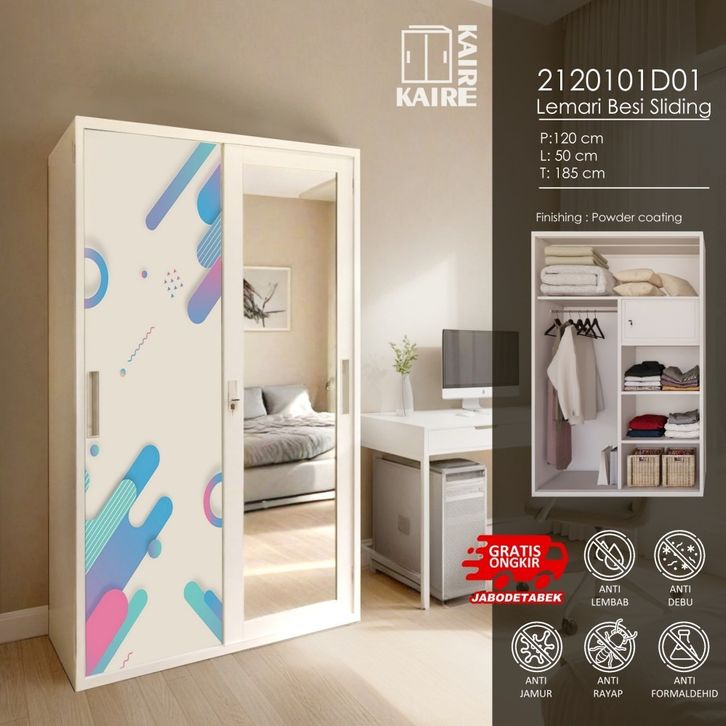 [Mall] KAIRE Lemari Pakaian Besi 2 Pintu Sliding Jumbo | 120cm Rak Baju