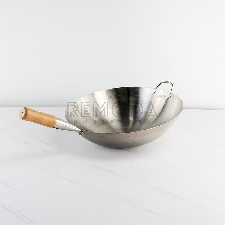 Calypso Wok Kuali Wajan Penggorengan Ukuran 30-40cm Gagang Stainless & Kayu Tebal
