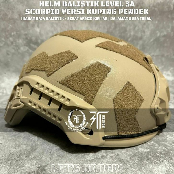 ORIGINAL 100. HELM BALISTIK LEVEL 3A MODE SCORPIO VERSI KUPING PENDEK - CREAM / TAN / GURUN - HELM TACTICAL BALISTIC