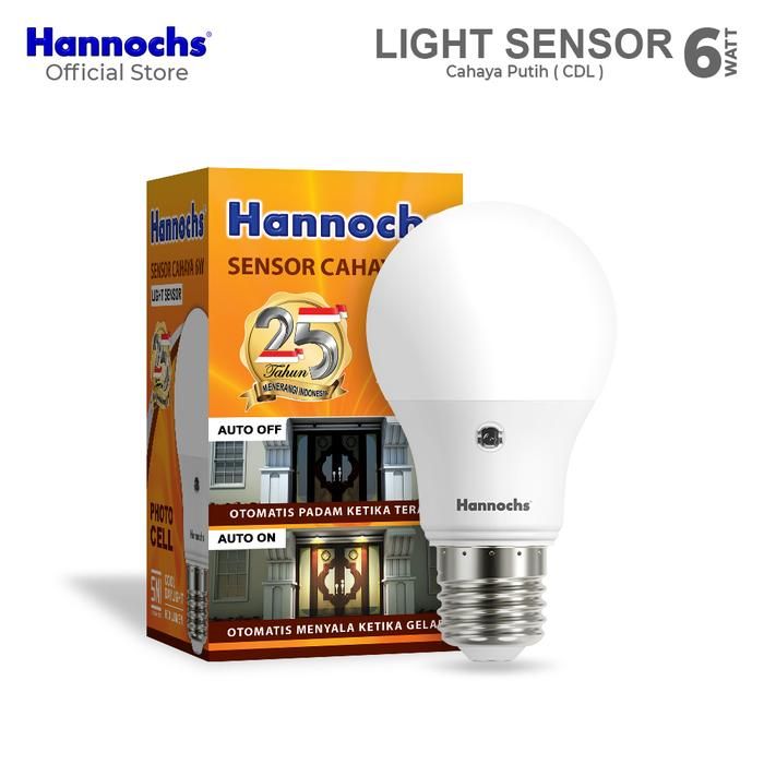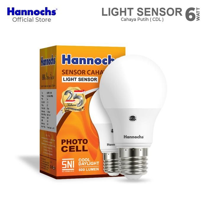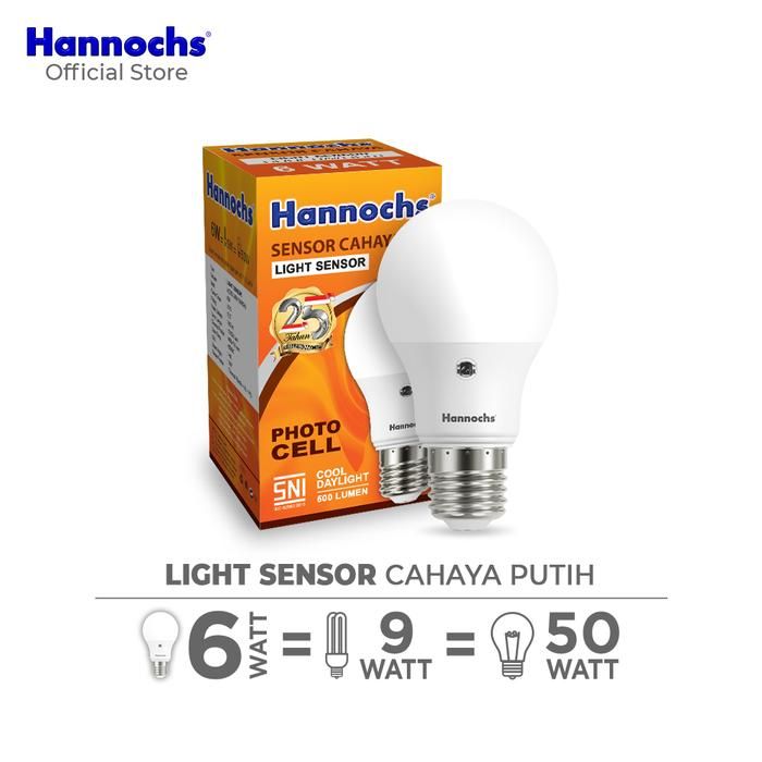 Hannochs Lampu Bohlam LED Light Sensor/Sensor Cahaya 6W Cahaya Putih