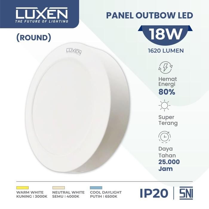 Luxen Downlight LED Panel Outbow Bulat 18 Watt Cahaya Putih dan Kuning