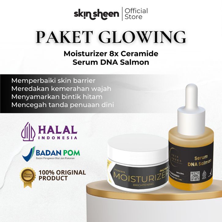 SKIN SHEEN - Paket Glowing Bundle Combo Moisturizer 8x Ceramide & Serum DNA Salmon Formula Serum Glowing Basic