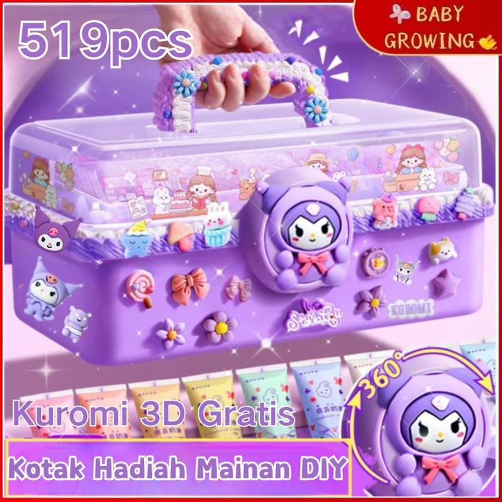 Mainan Anak 519pcs Kuromi Gantungan kunci DIY kotak hadiah kreatif lem krim stiker guka mainan hadiah anak perempuan