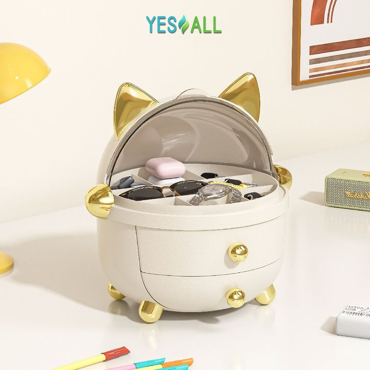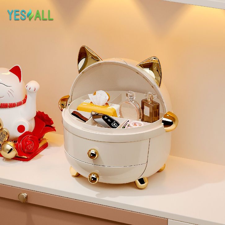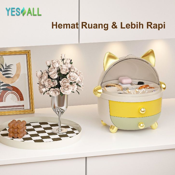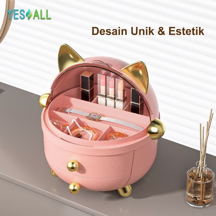 Kotak Penyimpanan Serbaguna Rak Dekorasi Kucing Laci Mini Aesthetic Rak Skincare Tempat Make up Storage Box Rak Mini