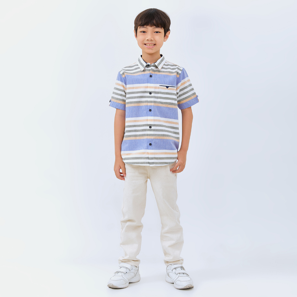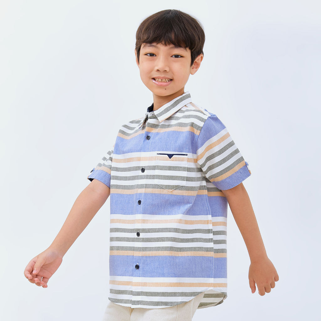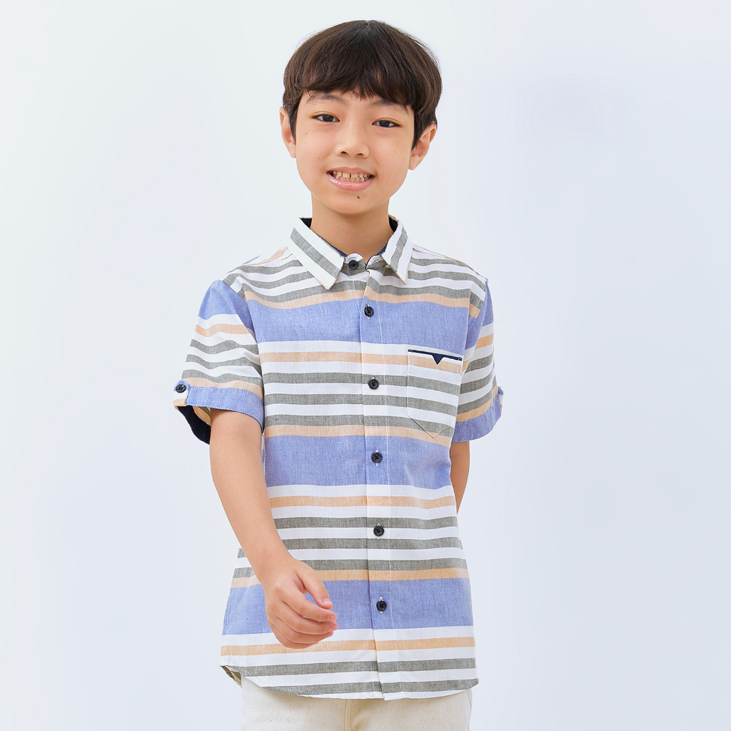 M231 Kemeja Anak Laki Laki Salur Stripe Pendek Biru 3073A