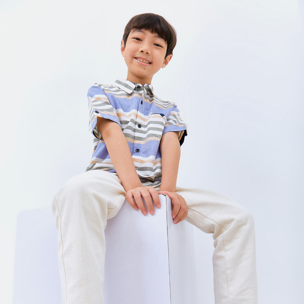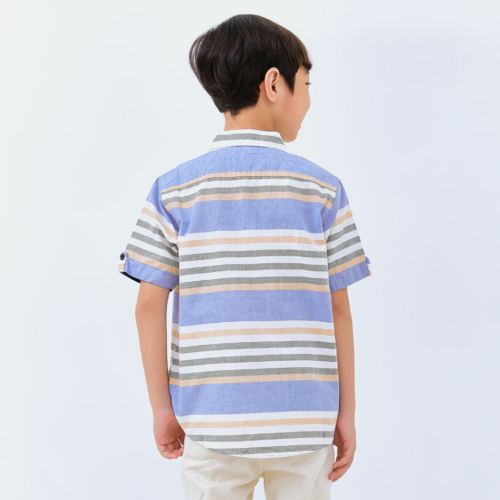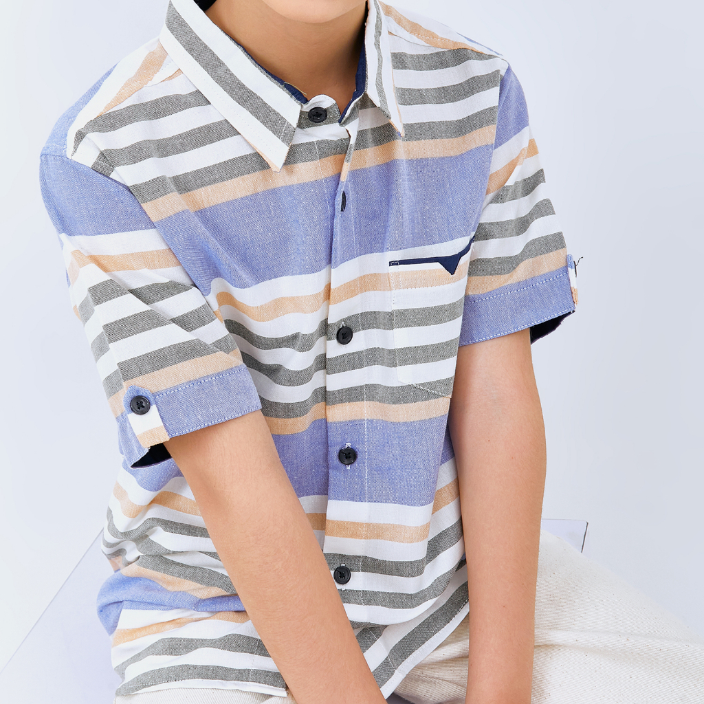 M231 Kemeja Anak Laki Laki Salur Stripe Pendek Biru 3073A
