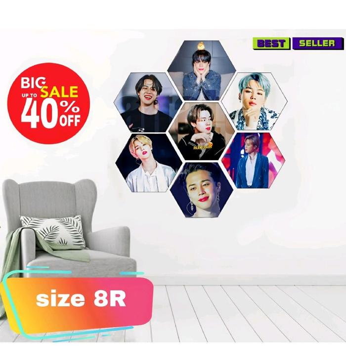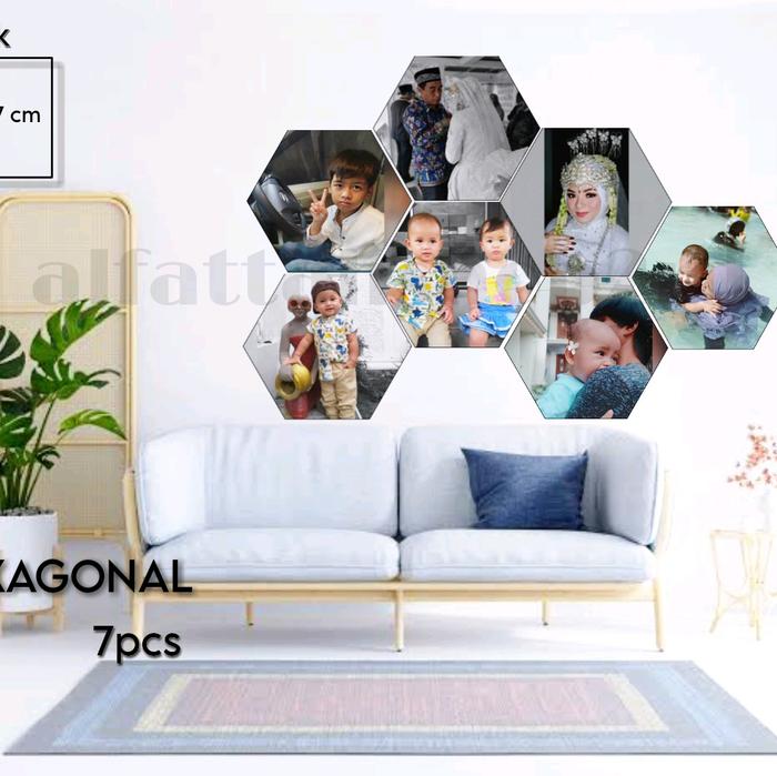 CETAK FOTO BINGKAI HEXAGONAL ISI 7PCS Dipasang di Dinding kertas Paku