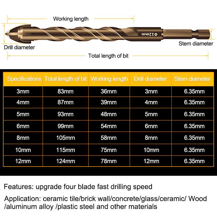 Terlaris 3-12mm Set Mata Bor Hex Bahan Alloy Untuk Melubangi Kaca / Keramik / Beton - Brown3 -12mm(7pc) Promo