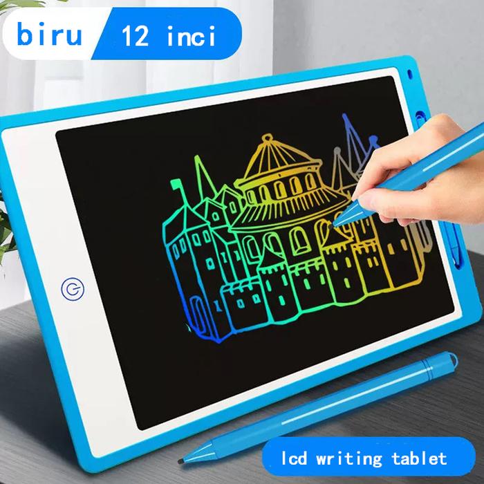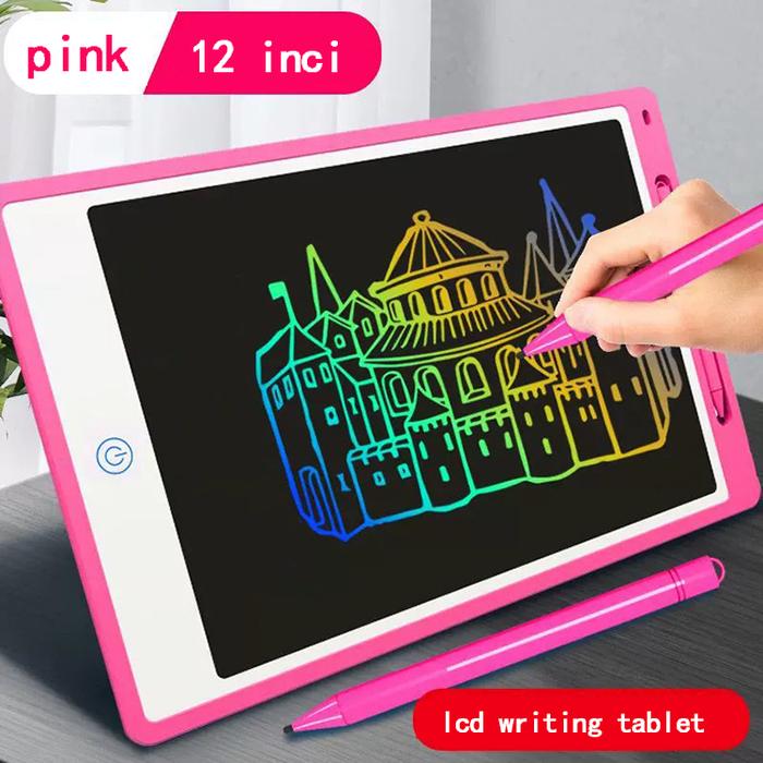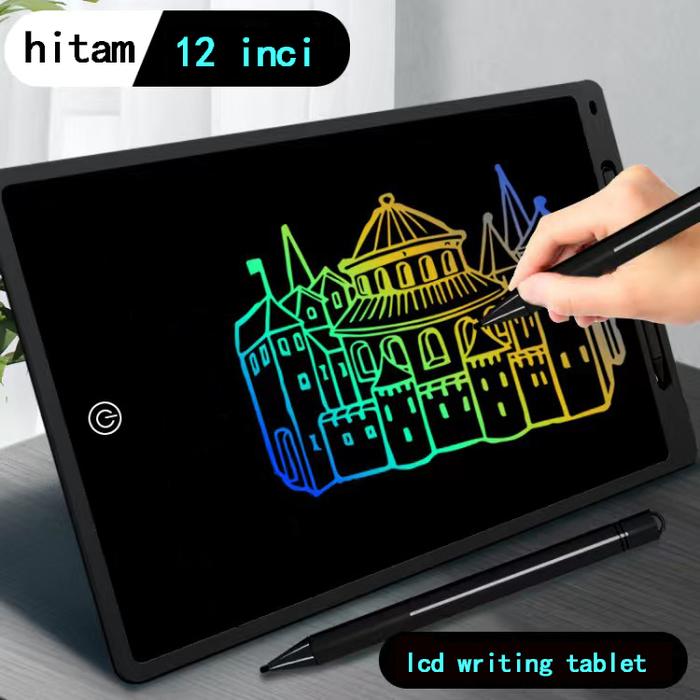 Terlaris COLORFUL 12 INCH Papan tulis belajar anak lcd writing tablet drawing mainan edukasi anak Toy Kids - hitam Promo