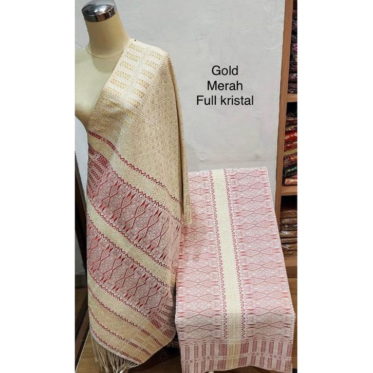 Songket Medan Tumtuman Tarutung Tanpa Sambungan Warna Merah Full Benang