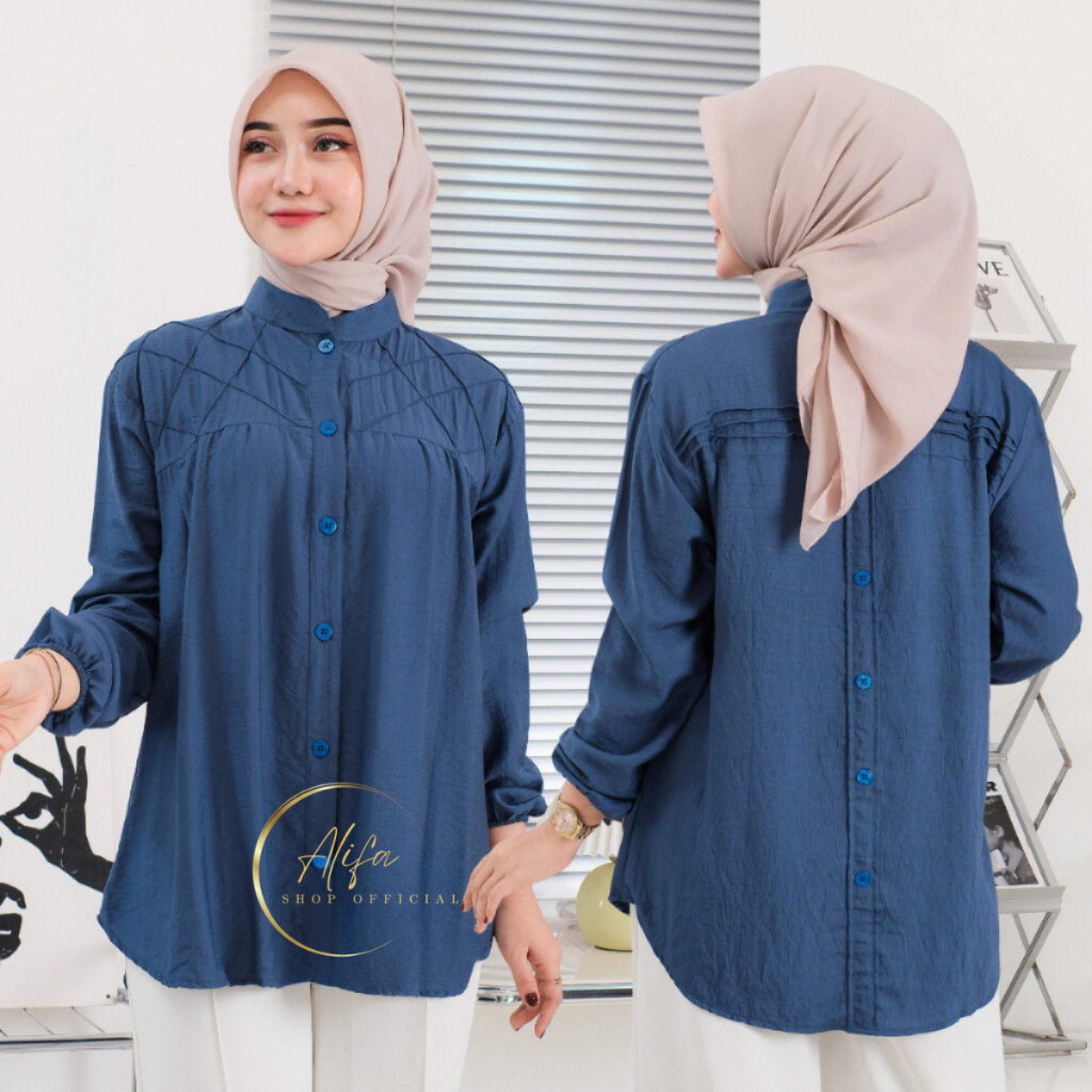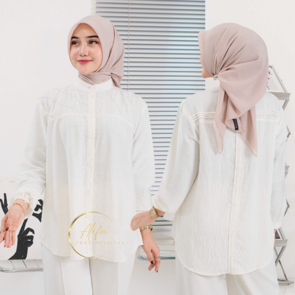 (Gratis Ongkir) Kemeja Wanita Linen Oversize Laura Shirt Atasan Blouse Lengan Panjang