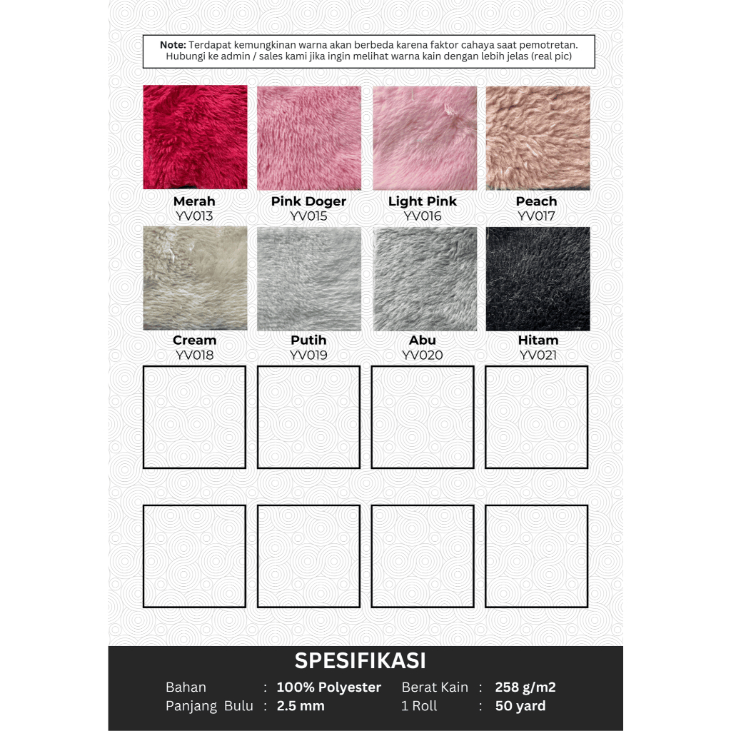 Ruveetex Kain Yelvo Kain Bulu Lembut ECERAN 1 Yard (90 cm x 150 cm) Cocok untuk Boneka, tas, sajadah, dll