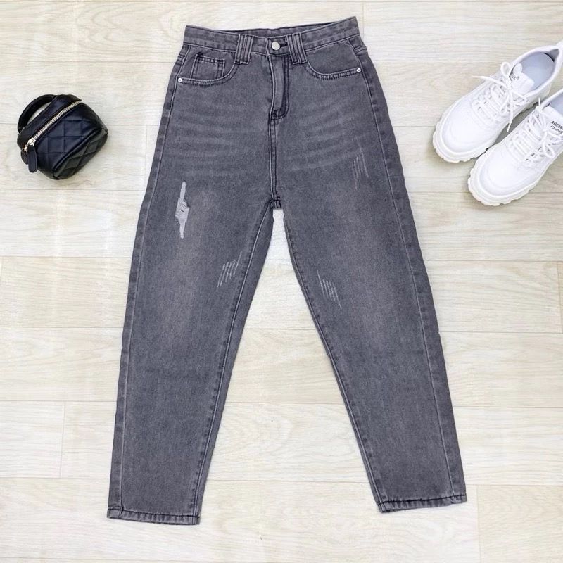 Celana Jeans Wanita Highwaist Boyfriend Jeans Sobek