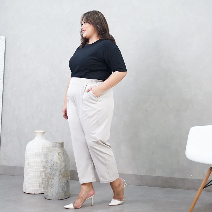 IE.DEM0DE Karin Celana Panjang Wanita Daily Kerja Kantor Big Size Highwaist Baggy Pants Putih Oat